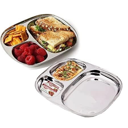 • đź””MULTIPURPOSE USE - This Steel portion Plate is perfect for both parents and children’s to use daily. The portion control plate is designed by considering all perspective of meals which make itself a complete set. With the 3 compartments one can easily have its breakfast, tiffin, snacks like pav bhaji, idli, dosa without any extra utensil support.