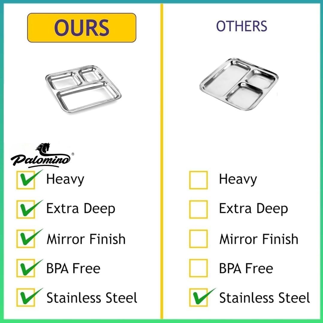 • đź””EXTRA DEEP COMPARTMENT- The Portion of this steel dinner plates are made EXTRA DEEP, so as to accommodate more quantity of any kind of food.