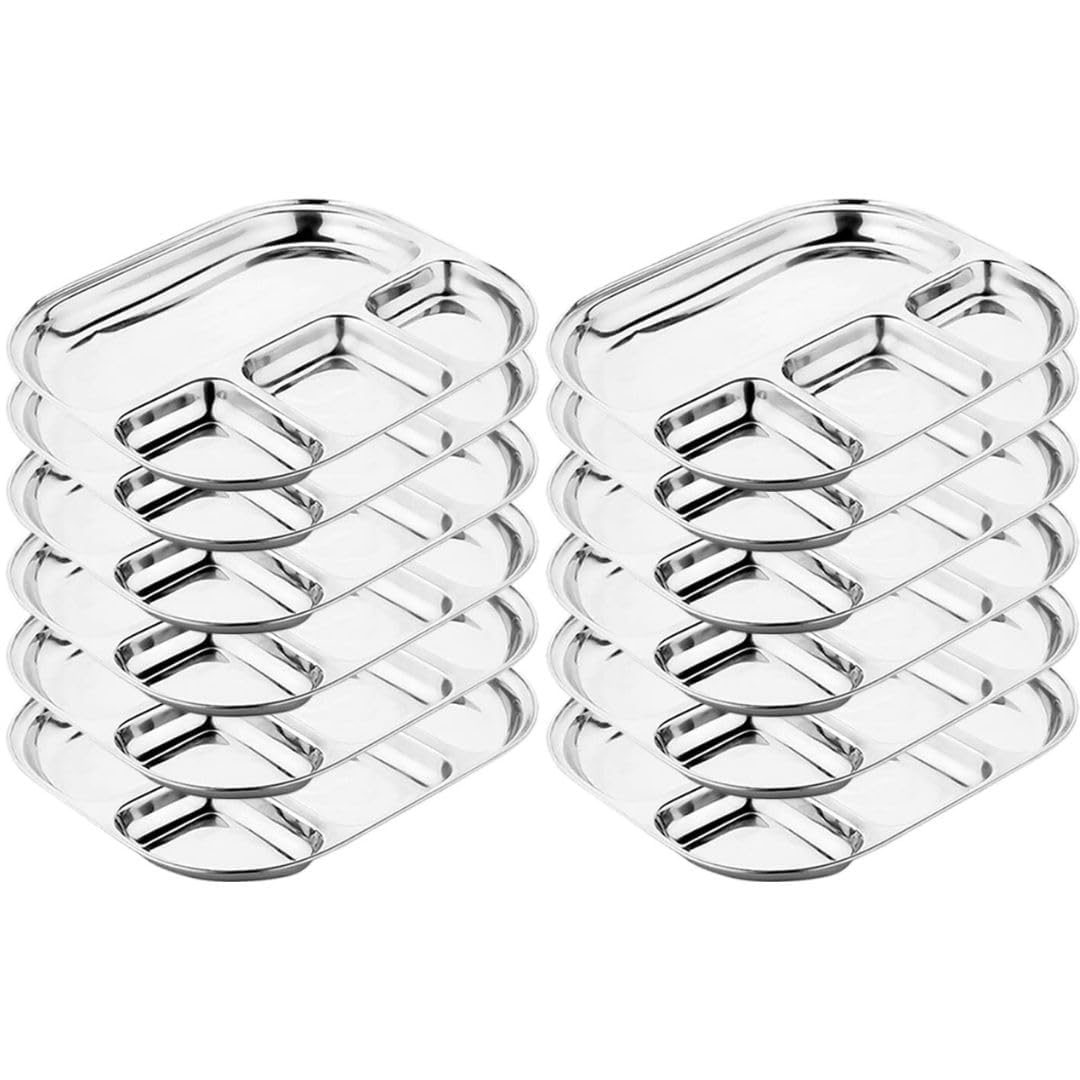 Palomino 4 in 1 Stainless Steel Plates with Compartments | Tiffin Plates | Idli Sambhar Plates | Partition Plates | Breakfast Plate | Steel Plates for Lunch/Dinner (Set of 12 Plates)