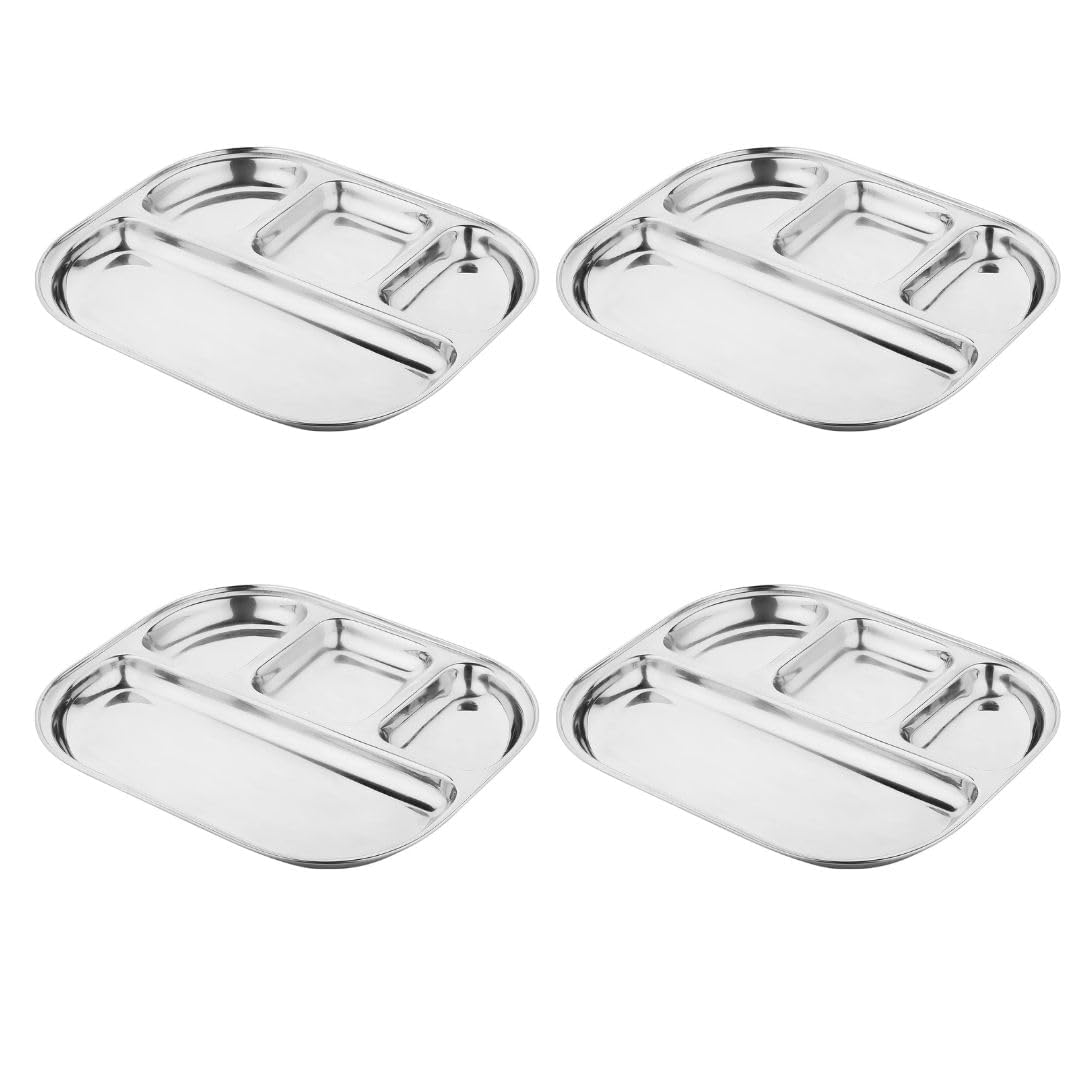 • đź””MULTIPURPOSE USE - This Steel portion Plate is perfect for both parents and children’s to use daily. The portion control plate is designed by considering all perspective of meals which make itself a complete set. With the 4 compartments one can easily have its breakfast, tiffin, snacks like pav bhaji, idli, dosa without any extra utensil support.
