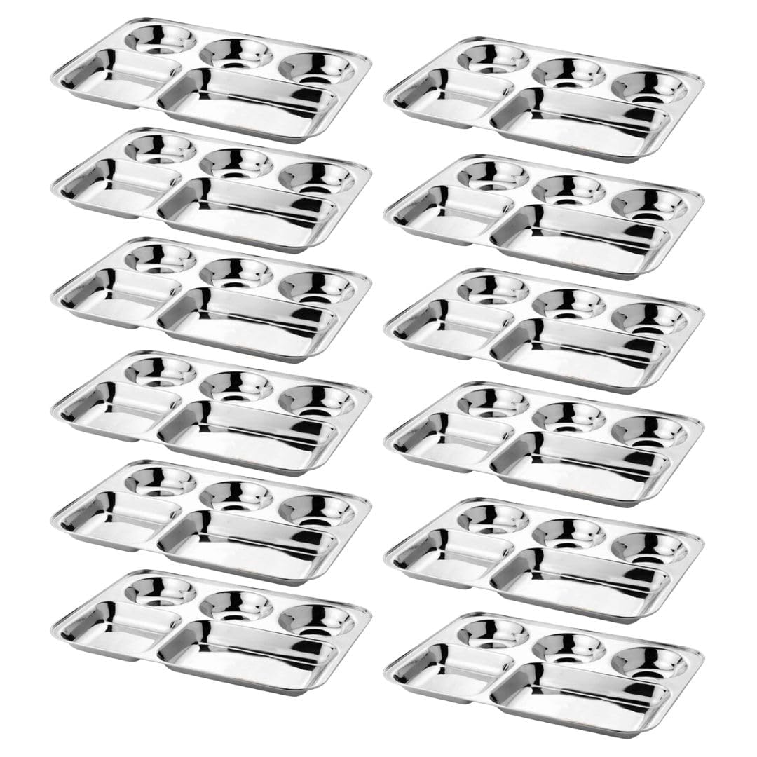Home UTENSILS Palomino 5 in 1 Stainless Steel Plates with Compartments | Tiffin Plates | Idli Sambhar Plates | Partition Plates | Breakfast Plate | Steel Plates for Lunch/Dinner (Set of 12 Plates)