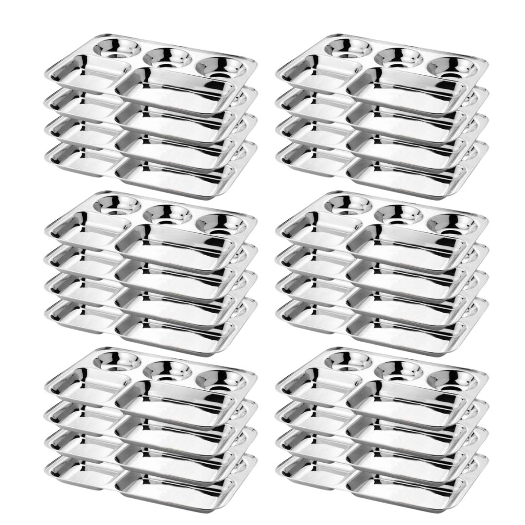 Home UTENSILS Palomino 5 in 1 Stainless Steel Plates with Compartments | Tiffin Plates | Idli Sambhar Plates | Partition Plates | Breakfast Plate | Steel Plates for Lunch/Dinner (Set of 24 Plates)