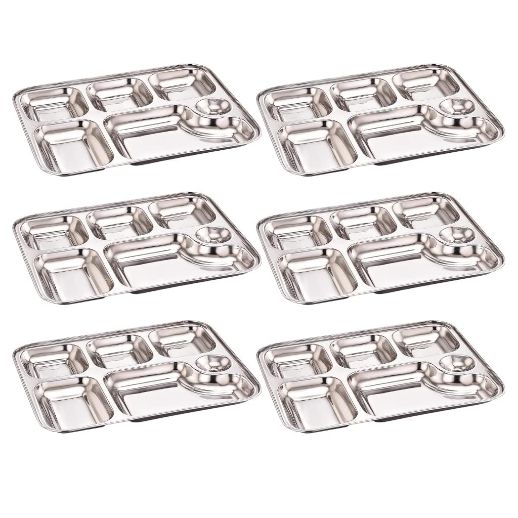 Home UTENSILS Palomino 6 in 1 Stainless Steel Plates with Compartments | Tiffin Plates | Idli Sambhar Plates | Partition Plates | Breakfast Plate | Steel Plates for Lunch | Dinner (Set of 6 Plates)
