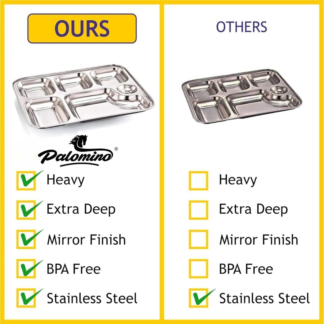 Palomino 6 in 1 Stainless Steel Plates with Compartments | Tiffin Plates | Idli Sambhar Plates | Partition Plates | Breakfast Plate | Steel Plates for Lunch | Dinner (Set of 12 Plates) (Copy)