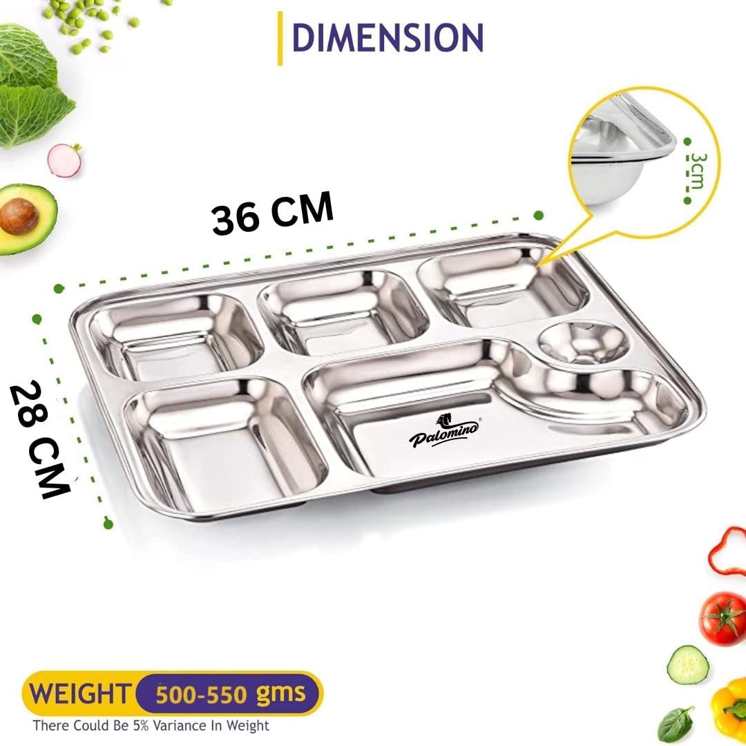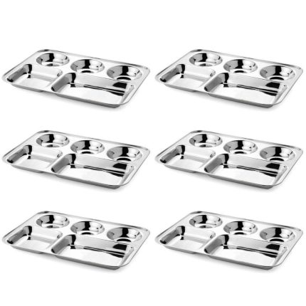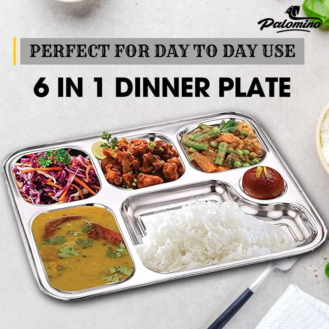 Palomino 6 in 1 Stainless Steel Plates with Compartments | Tiffin Plates | Idli Sambhar Plates | Partition Plates | Breakfast Plate | Steel Plates for Lunch | Dinner (Set of 6 Plates) ₹5,599.00 Original price was: ₹5,599.00.₹2,745.00Current price is: ₹2,745.00.