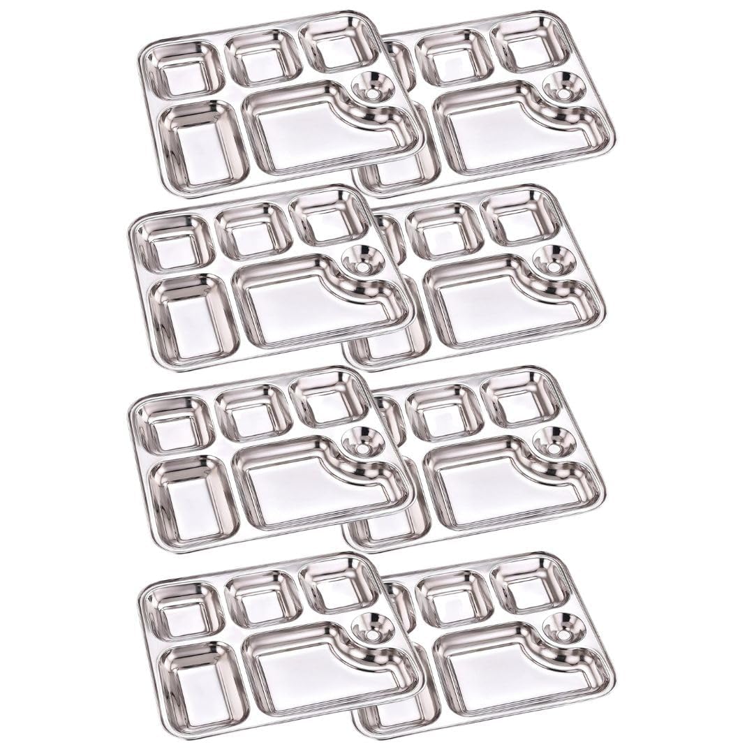 Home UTENSILS Palomino 6 in 1 Stainless Steel Plates with Compartments | Tiffin Plates | Idli Sambhar Plates | Partition Plates | Breakfast Plate | Steel Plates for Lunch | Dinner (Set of 8 Plates)