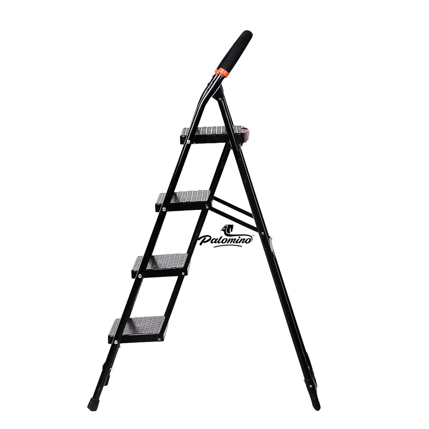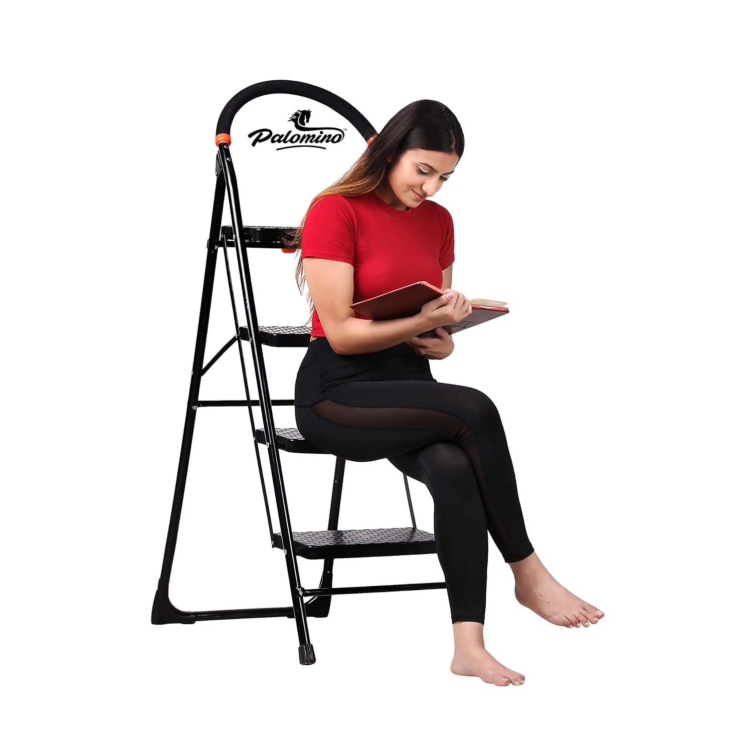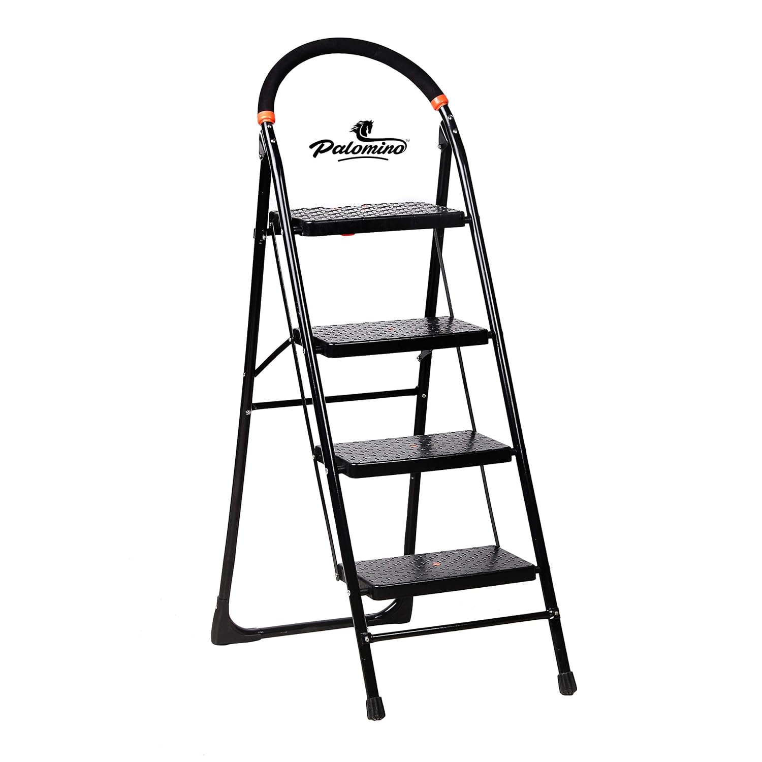 Home STEP LADDERS PALOMINO Black Heavy Duty Folding Stepladders with Wide 4 Steps Ladder Sidhi (Make in India)
