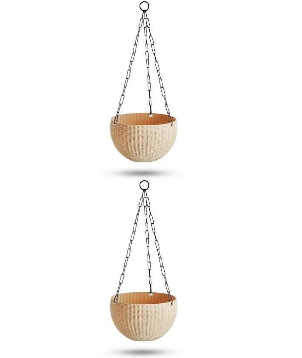 Home PLANTERS PALOMINO Hanging Euro Basket Planters Indoor Outdoor Hanging Flower Plant Pot with Hanging Chain (Pack Of 2) Plant Container (Plastic, External Height – 11 cm) Plant Container Set (Pack of 2, Plastic)
