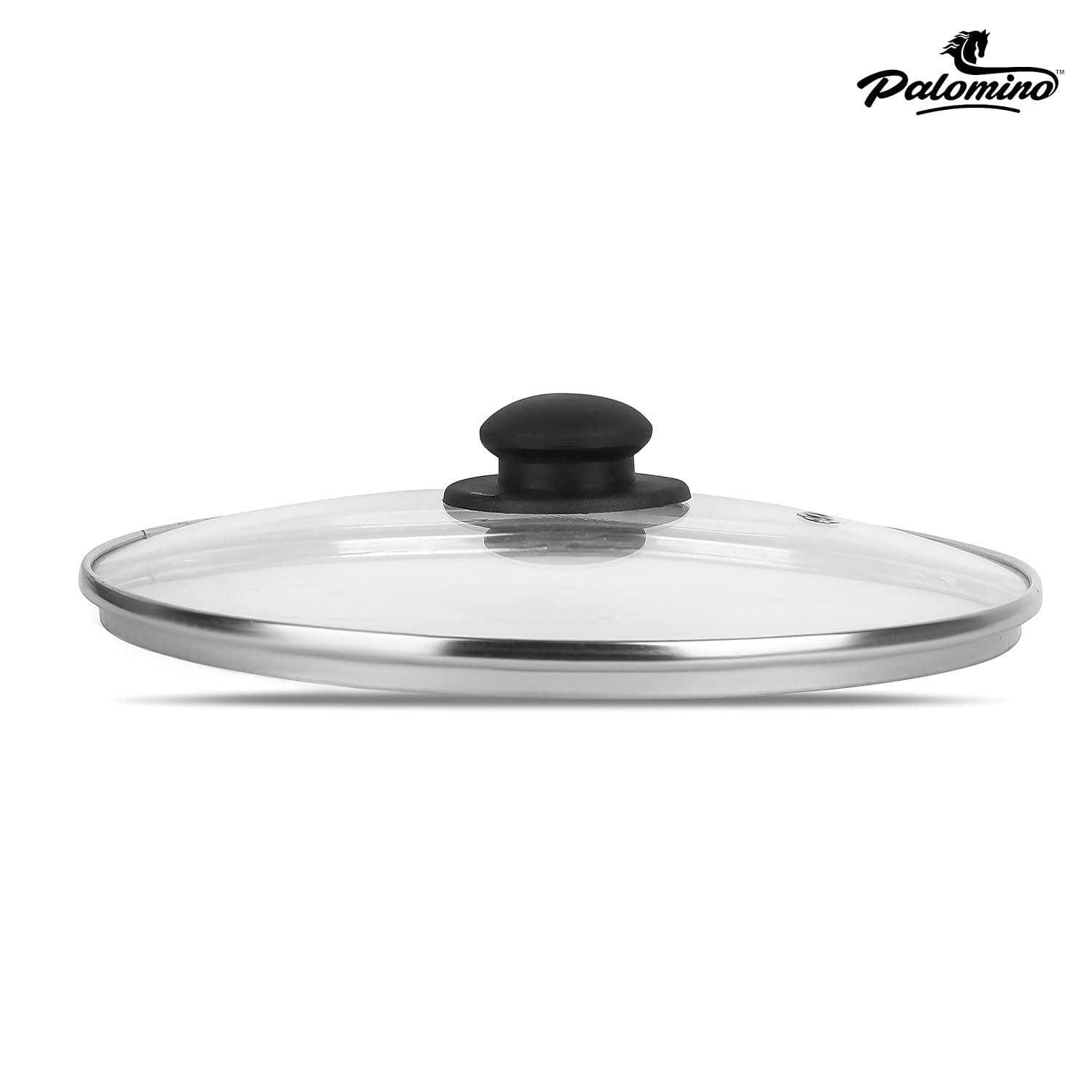Palomino Heavy Duty Non-Stick Deep Kadhai 3mmThickness Non-Stick Cookware with Glass Lid (24 cm,Pack of 1,Black, Non-Induction Base)