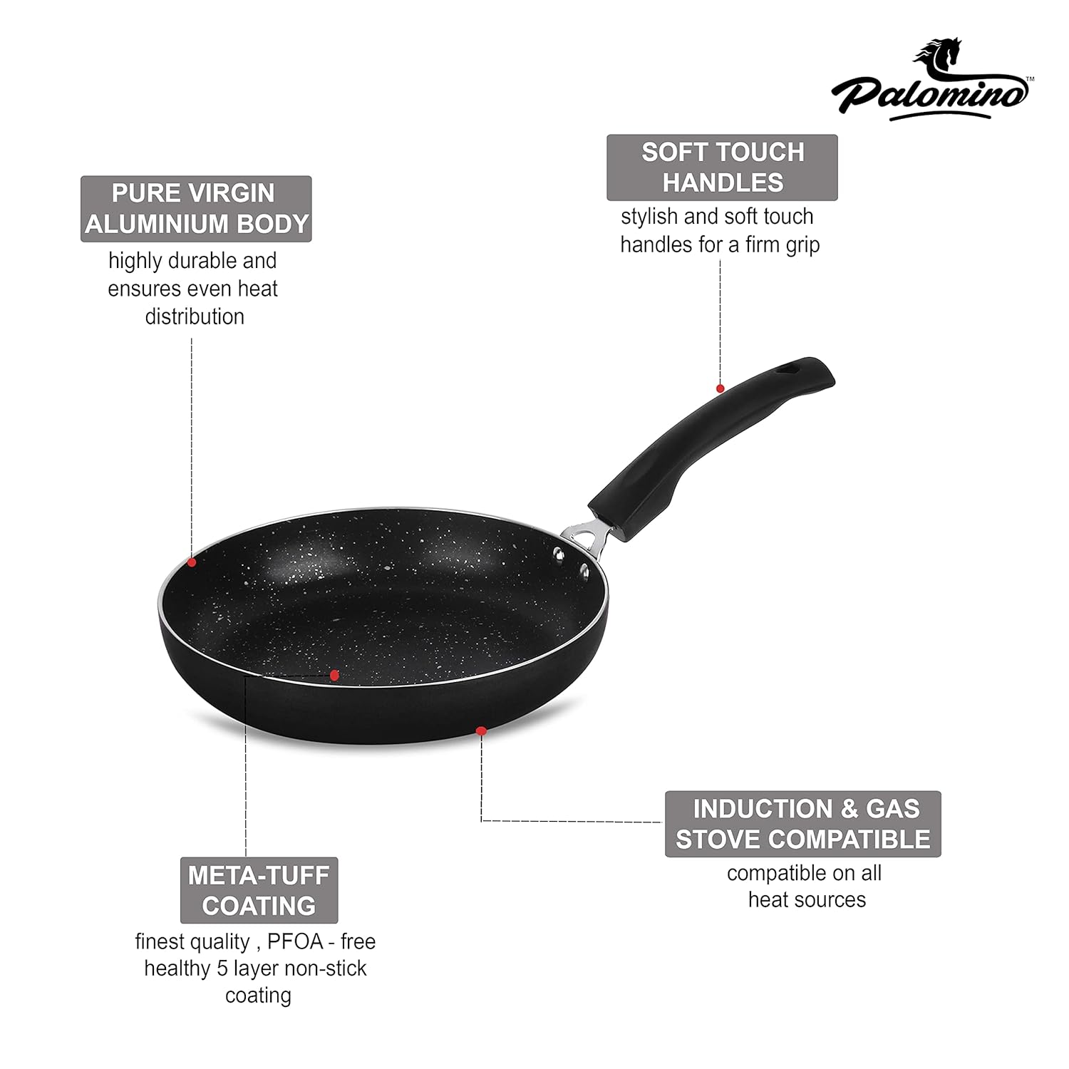 • Designer forged pans made with pure grade virgin aluminium for quick and even heat distribution Health-friendly, 100% PFOA free, heavy metal and nickel free 5-layer Meta Tuff non-stick coating for daily oil-free cooking.