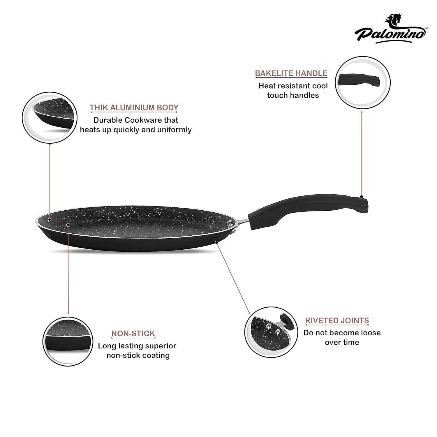 Palomino Aluminum Induction Base Griddle Roti | Chapathi | Chapati | Paratha Tawa with Handle (Black, 25cm, Pack of 1)