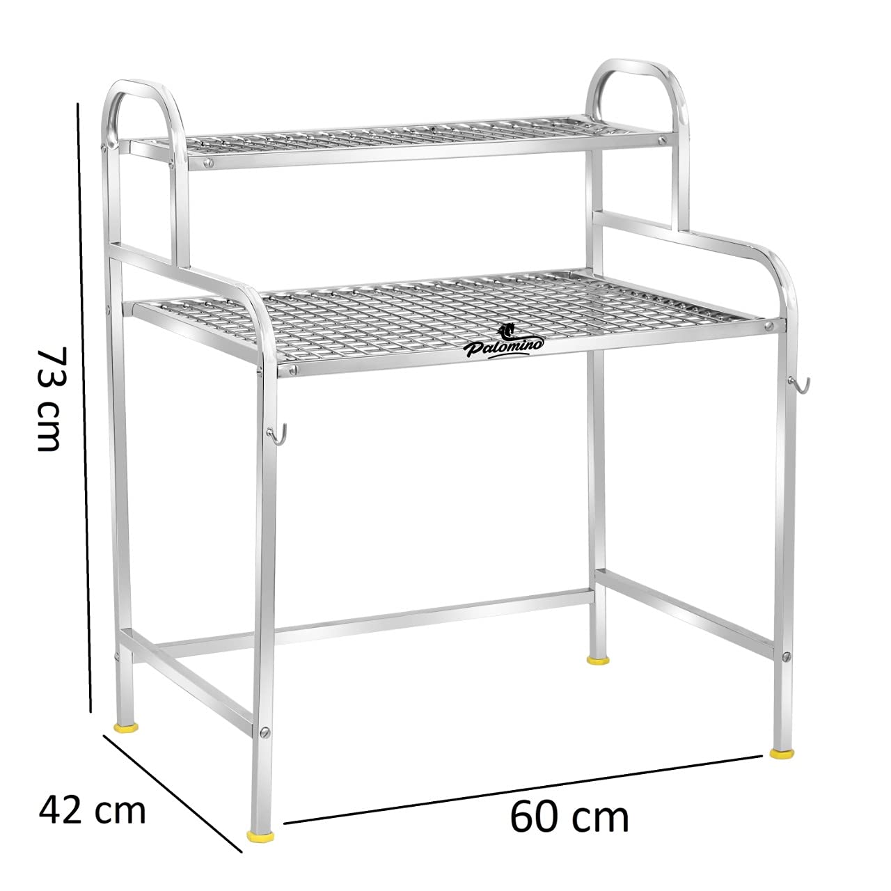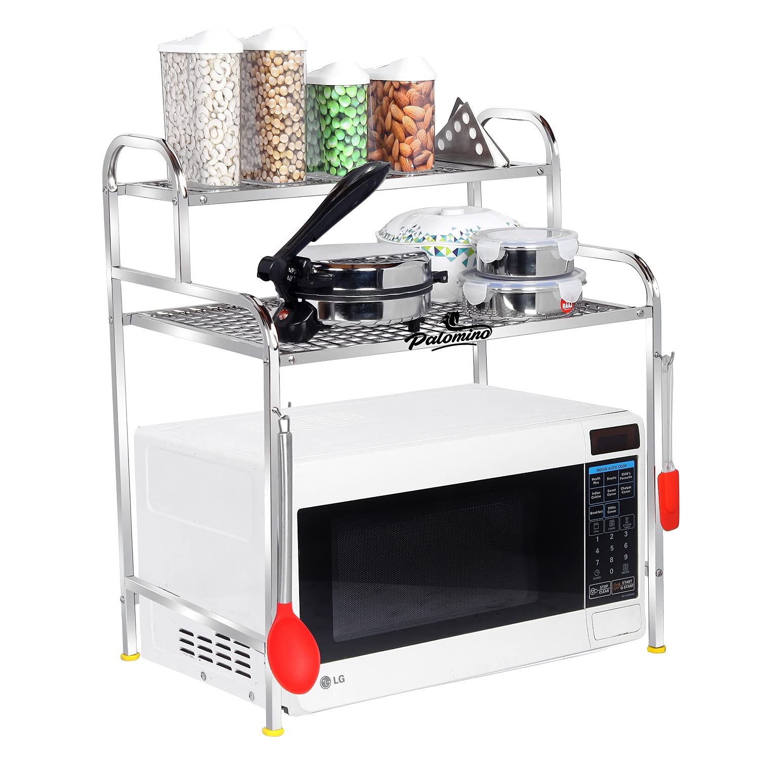 Palomino Stainless Steel 2 Shelf Microwave Or Oven Stand | Multipurpose Counter Top Standing 2 Tier Kitchen Rack | Kitchen Organizer, Tiered Shelf