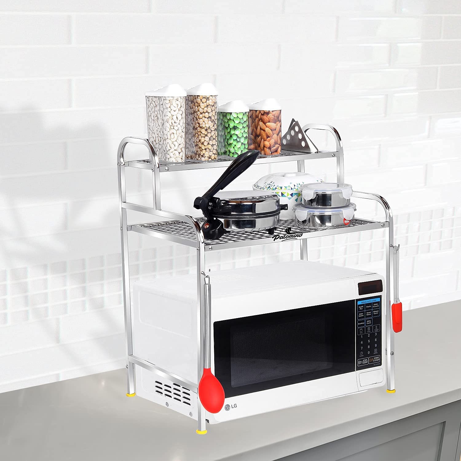 Palomino Kitchen Microwave Shelf, Stand Kitchen Counter Shelf Organizer, Spicy Shelf Rack Toaster Organizer, Microwave Oven Rack, 3 Tiers with 2 Hooks (75 x 38 x 11 cm, Stainless Steel, Tiered Shelf) ₹1,981.00 – ₹6,636.00