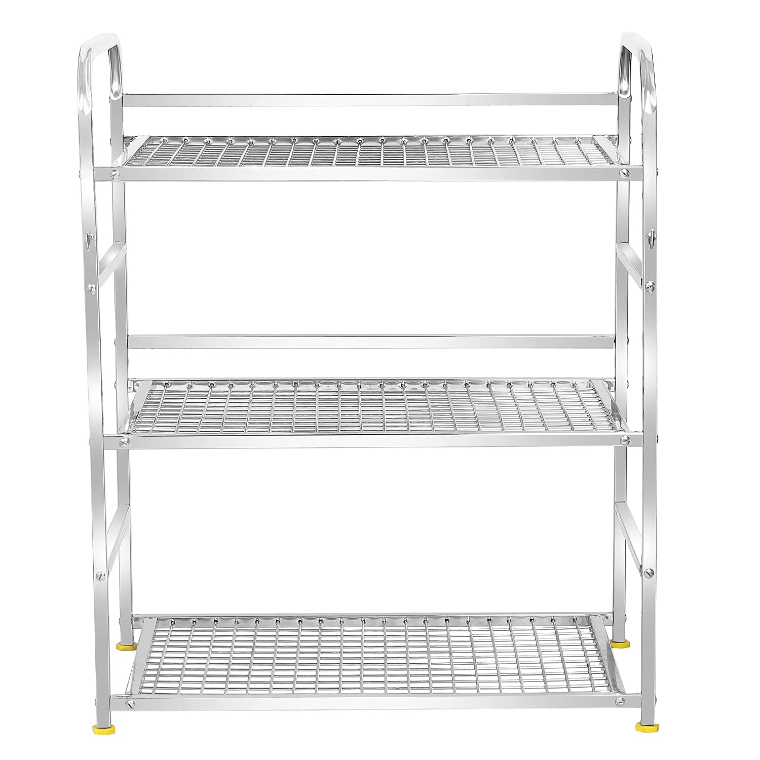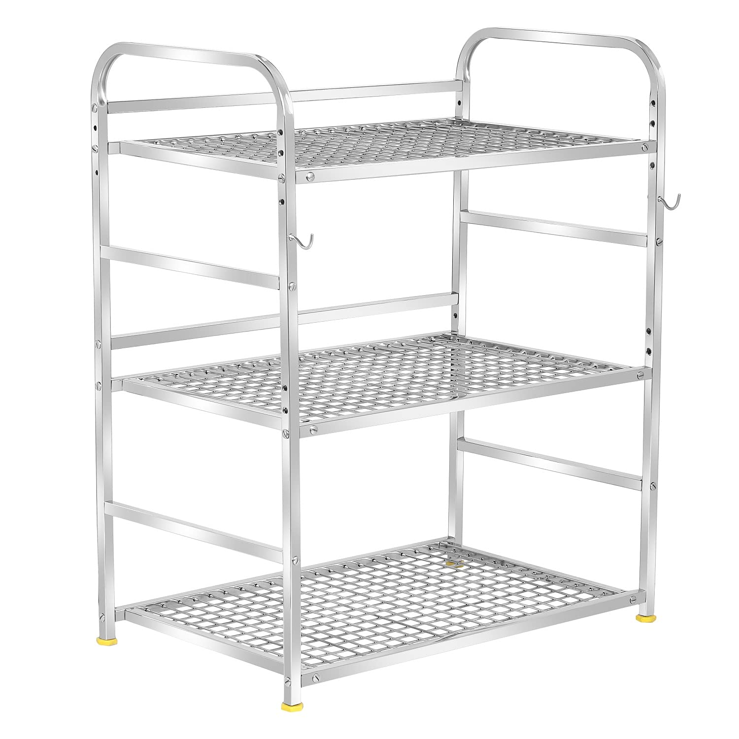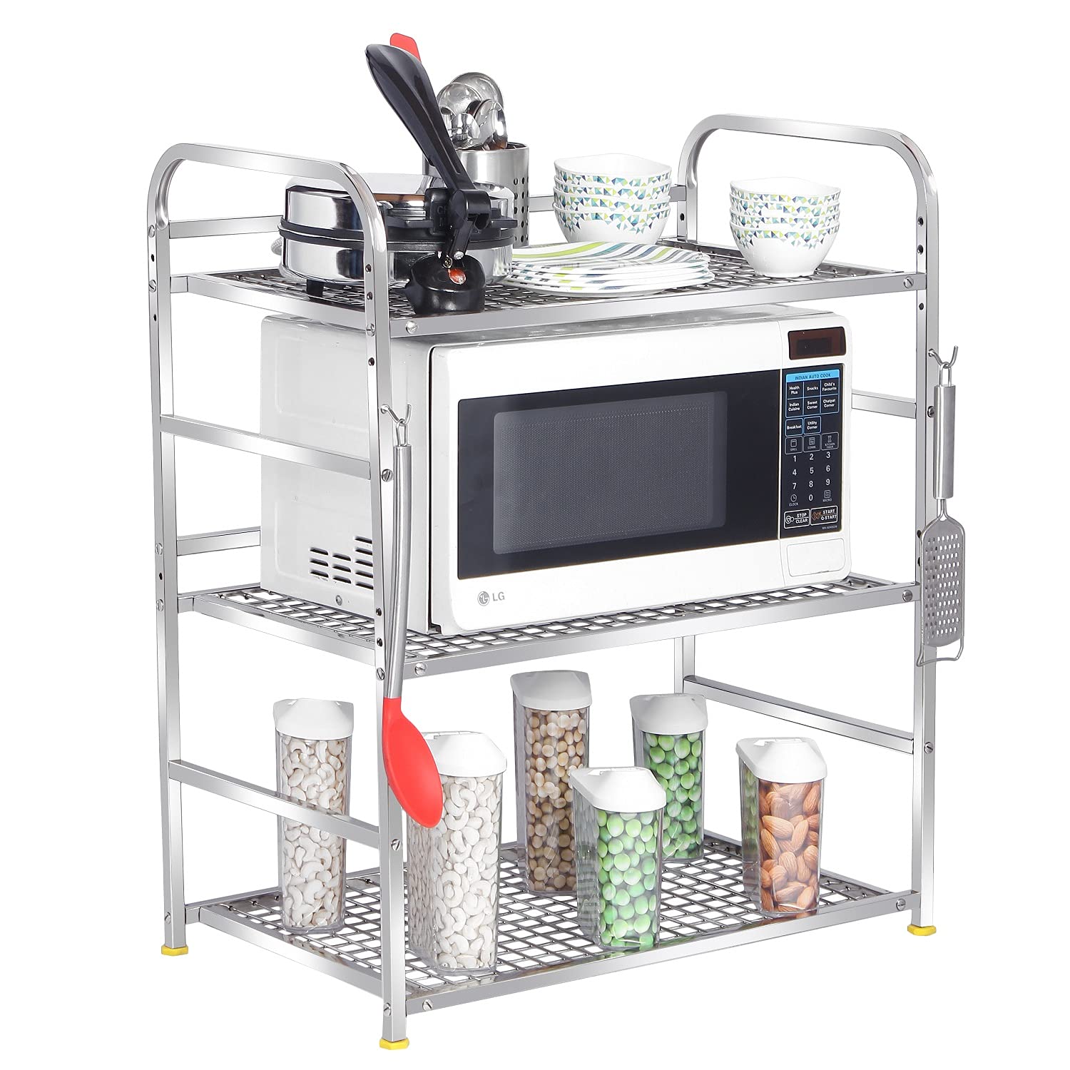Palomino Kitchen Microwave Shelf, Stand Kitchen Counter Shelf Organizer, Spicy Shelf Rack Toaster Organizer, Microwave Oven Rack, 3 Tiers with 2 Hooks (75 x 38 x 11 cm, Stainless Steel, Tiered Shelf)