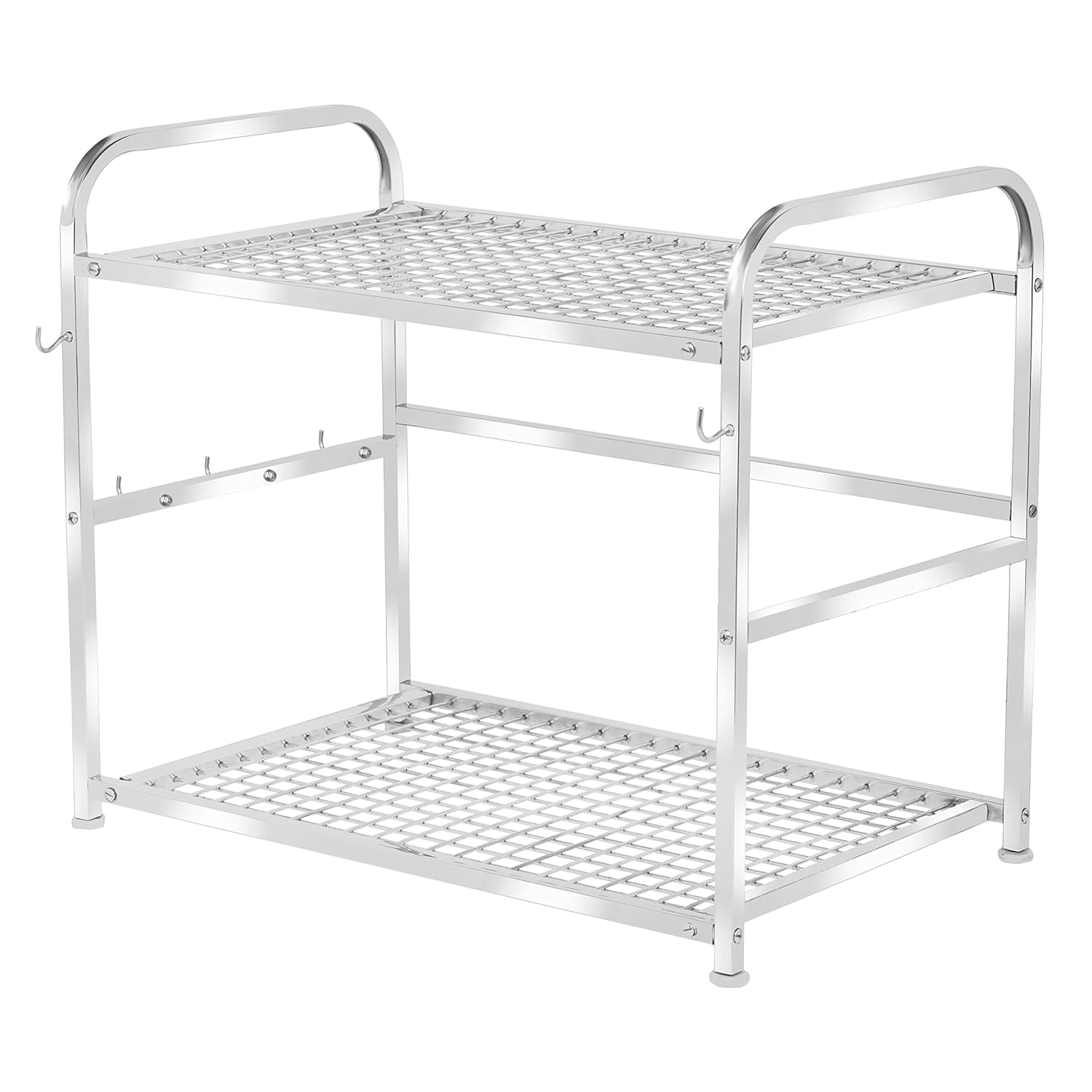 Palomino Kitchen Microwave Shelf, Microwave Stand Kitchen Counter Shelf Organizer, Spicy Shelf Rack Toaster Organizer, Microwave Oven Rack, 2 Tiers with 2 Hooks (74 x 44 x 8 cm)