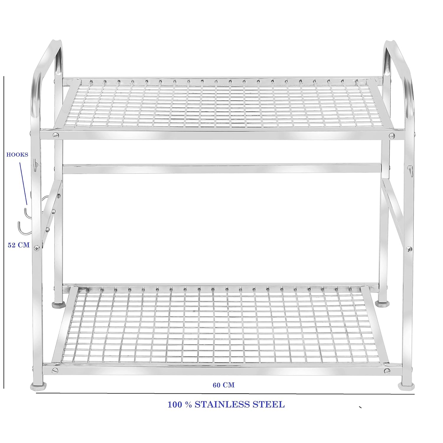 Home MICROWAVE STAND Palomino Stainless Steel 2 Shelf Microwave Or Oven Stand | Multipurpose Counter Top Standing 2 Tier Kitchen Rack | Kitchen Organizer, Tiered Shelf