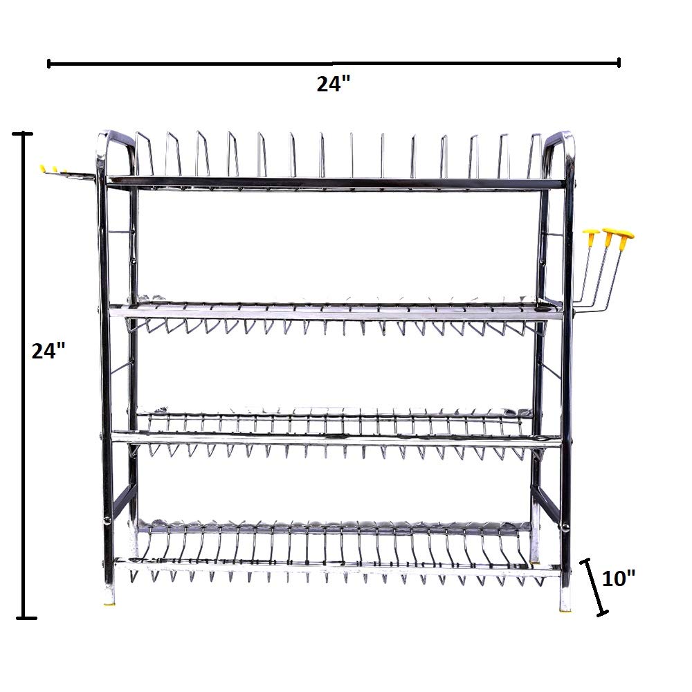 Home DISH RACK PALOMINO Stainless Steel 4 Layer Kitchen Rack Wall Mount Kitchen Dish Rack Plate Cutlery Stand/Kitchen Utensils Rack for Modern Kitchen Steel Kitchen Rack (24″*24″)