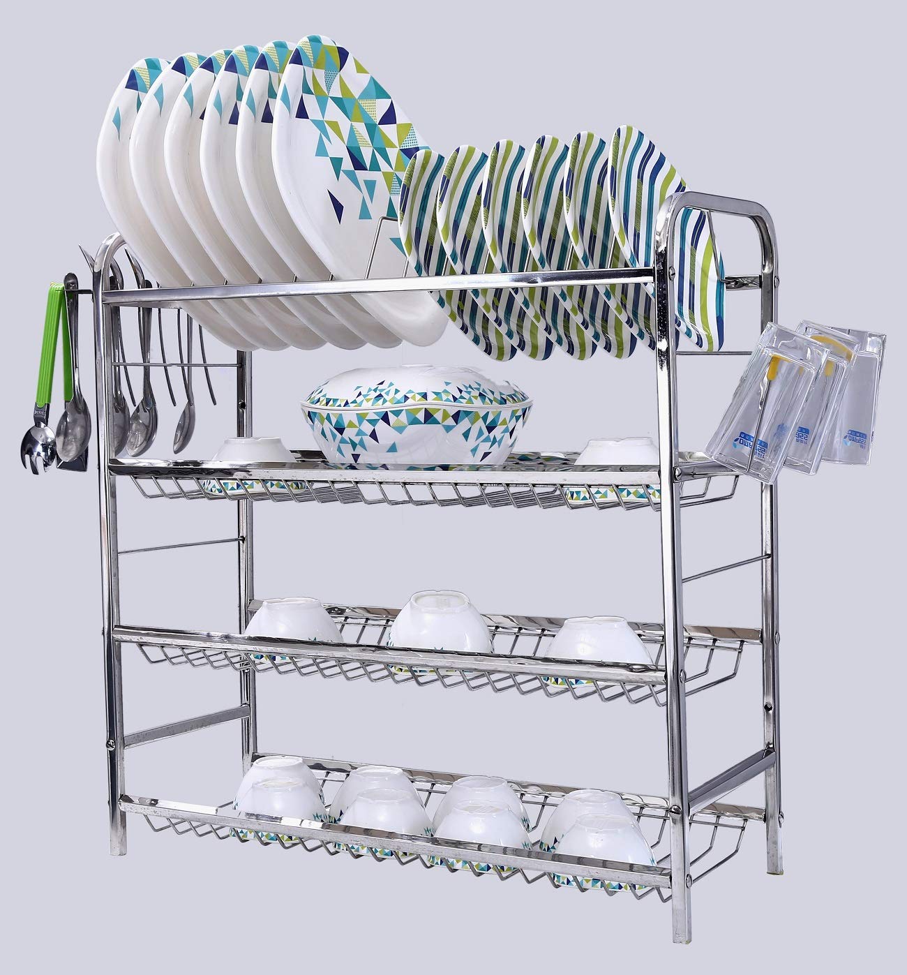 PALOMINO Stainless Steel Plate Rack | Dish Rack | Plate/Dish Stand | Utensil Rack | Chrome Plated Kitchen Rack | Dish Organizer/Holder | Thali/Tray Stand (18X15 Inch 3 Layer Dish Rack)