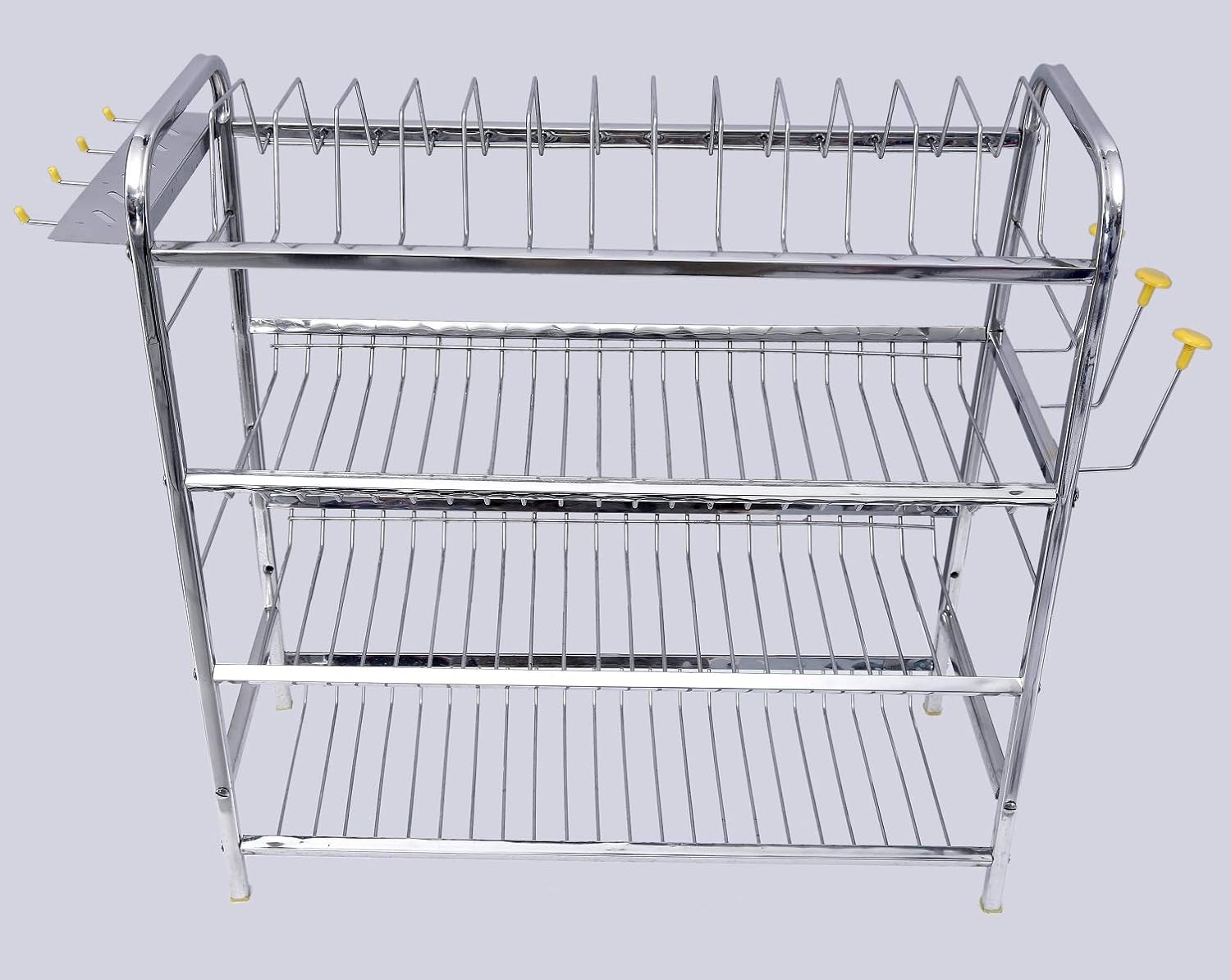 • Durable, Strong and Sturdy construction with premium seamless welding for smooth finish 100 % Non Magnetic Stainless Steel with Five layer Decorative Rust Proof Plating. Stainless Steel Kitchen Rack with ample space to neatly store your daily use crockery and cutlery