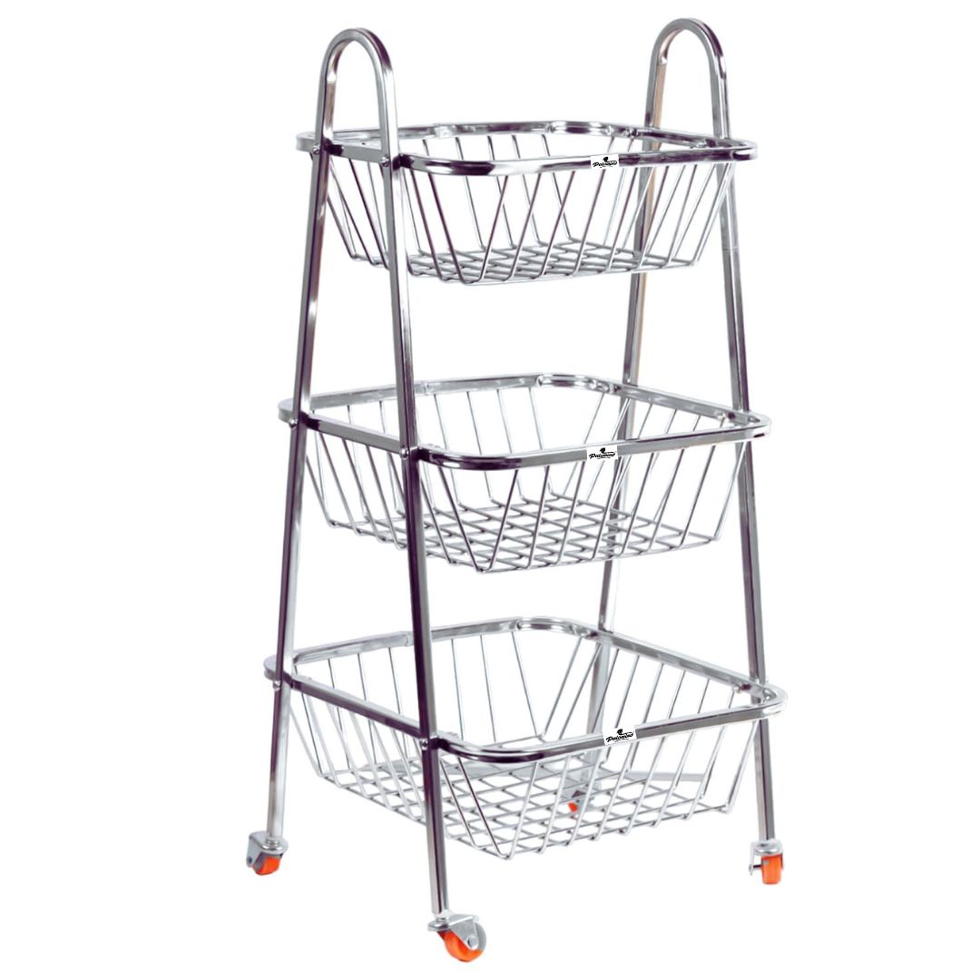 Palomino stainless steel modular kitchen accessories , Kitchen Rack, Kitchen Basket, Fruit Basket, Kitchen Trolly with Wheel, Vegetable Stand, Fruit Basket, Fruit Stand, Sabji Stand is ideal to keep Fruits and Vegetables, This can be used as Kitchen Trolly, this kitchen Trolly is made up with high quality stainless steel, Can be used for storage of Fruits, Onion, Garlic , Potato and vegetables in kitchen. It has long lasting quality. Palomino kitchen container.