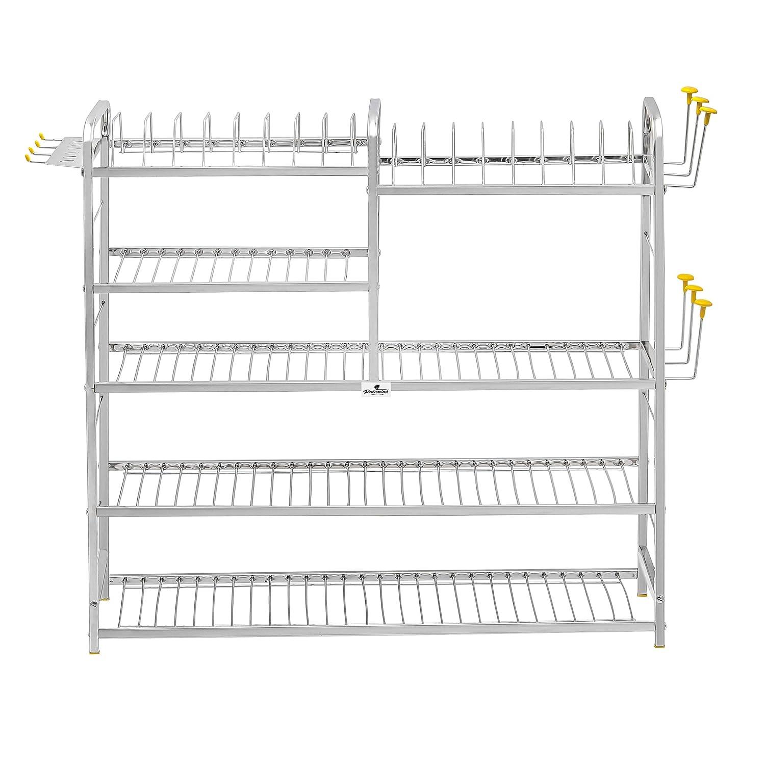 • Stainless Steel 5 Layer Wall Mount Kitchen Dish Rack Made up of 100% stainless steel which is stylish and modern and 100% rust proof