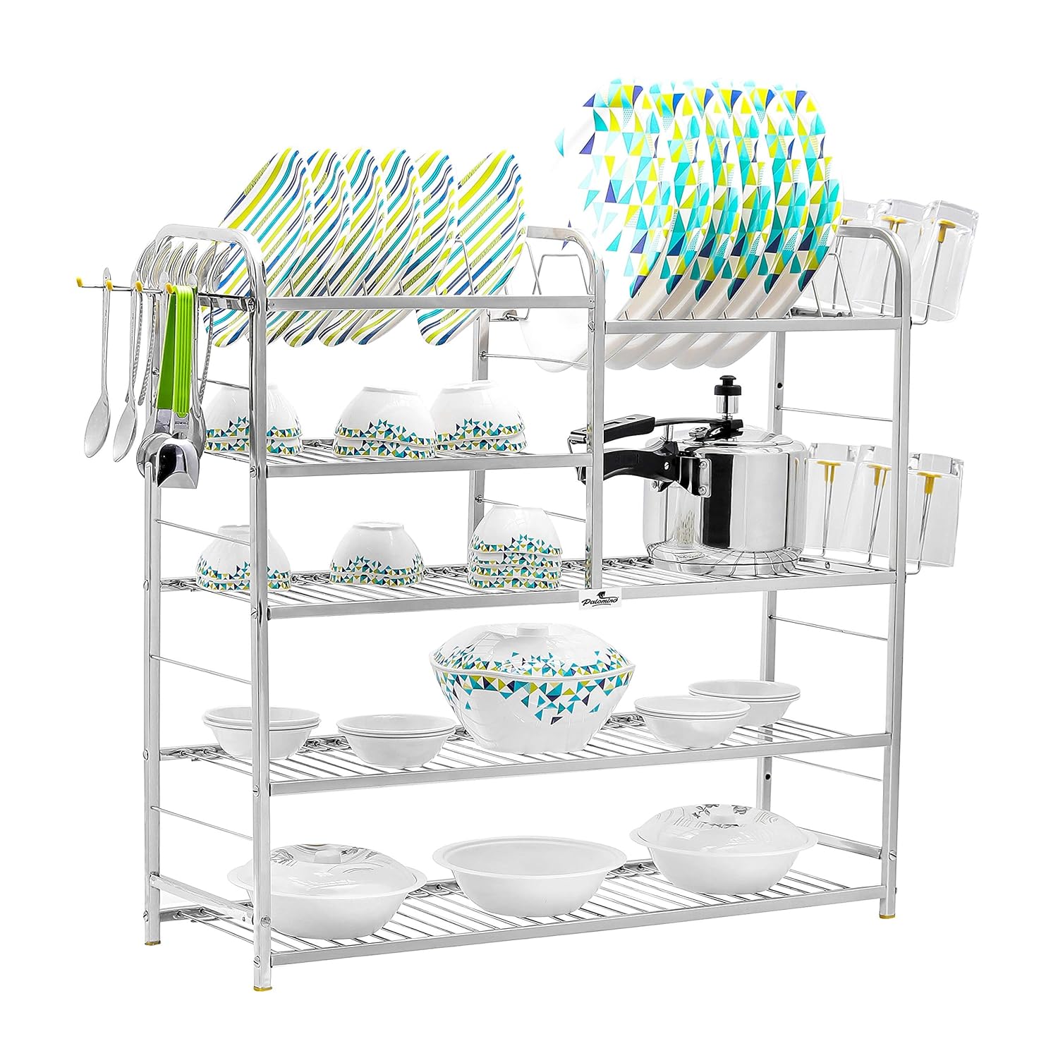 • Durable, Strong & Sturdy construction with premium seamless welding for smooth finish 100 % Non Magnetic Stainless Steel with Decorative Rust Proof Plating. Stainless Steel Kitchen Rack with ample space to neatly store your daily use crockery & cutlery