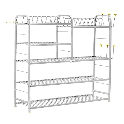 • Durable, Strong and Sturdy construction with premium seamless welding for smooth finish 100 % Non Magnetic Stainless Steel with Five layer Decorative Rust Proof Plating. Stainless Steel Kitchen Rack with ample space to neatly store your daily use crockery and cutlery